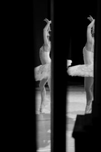 za zprostředkování kradmých okamžiků záhadné zákulisní změti kontrastující s precizností a čistotou baletu na scéně